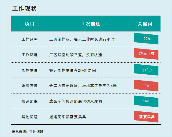 在貨物搬運(yùn)中,該基地整體工況主要特點(diǎn)是工作時(shí)間長(zhǎng)、貨物重、搬運(yùn)距離長(zhǎng):