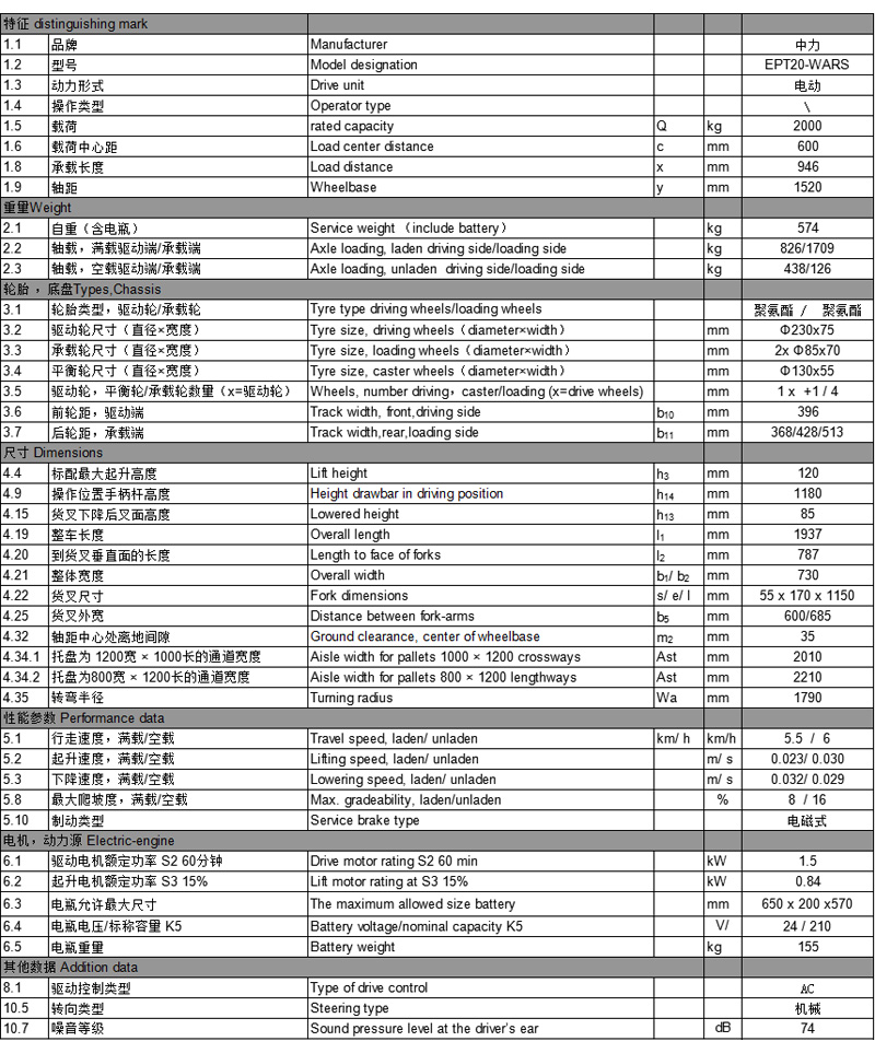 中力2.0噸電子轉向電動搬運車 EPT20-WARS