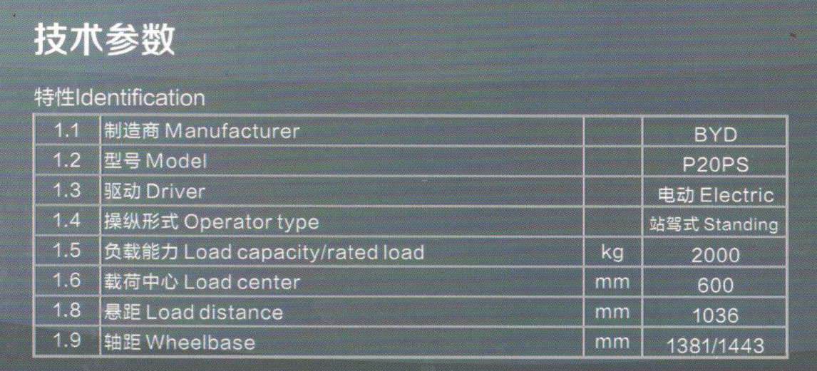 比亞迪P20PS站駕托盤搬運車